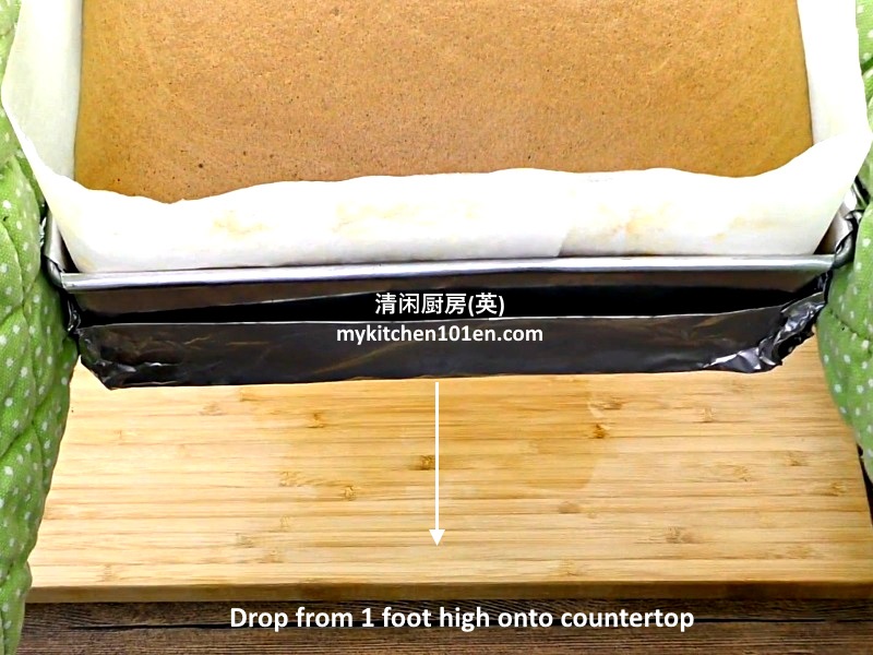 مرحله نهم- پس از بیرون آوردن از فر، قالب را از فاصله حدود بیست سانتی روی میز رها کنید. و بعد از طرفین کاغذ روغنی گرفته و به کمک آن کیک را از قالب بیرون بیاورید.