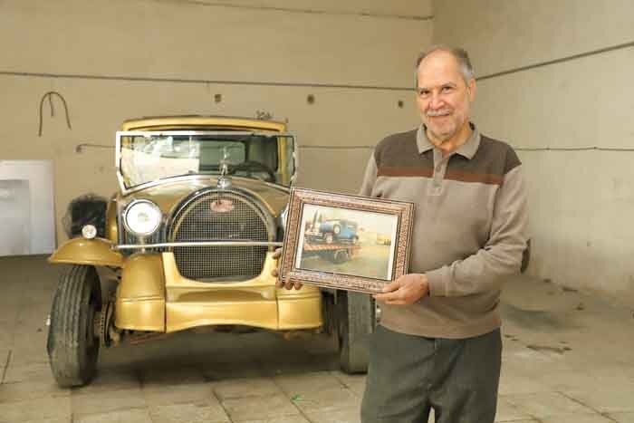 وسط آنهمه آچار و پیچگوشتی، گلگیرهای کهنه و انواع لوازم یدکی خودرو، یک قاب عکس کوچک جلب توجه میکند. قاب عکس را در بهترین نقطه کارگاه گذاشته که وسط کار همیشه چشمش به آن باشد انگار. قاب عکس، یک «فورد آتشین مدل ۱۹۲۴» را در محوطه شهرک سینمایی نشان میدهد.