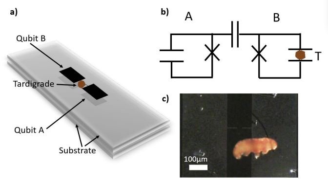 برای این آزمایش پژوهشگران یک تاردیگرید از گونهی «رامازوتیوس واریورناتوس» (Ramazzottius variornatus) را در حالت بین دو کیوبیت ابررسانا (معادل بیت در رایانش کلاسیک) قرار دادند. این حیوان توسط اتصال ابررسانا به یک کیوبیت باردار (Qubit B) متصل شد. کیوبیت دوم (Qubit A) فقط توسط یک خازن به کیوبیت B متصل شد.