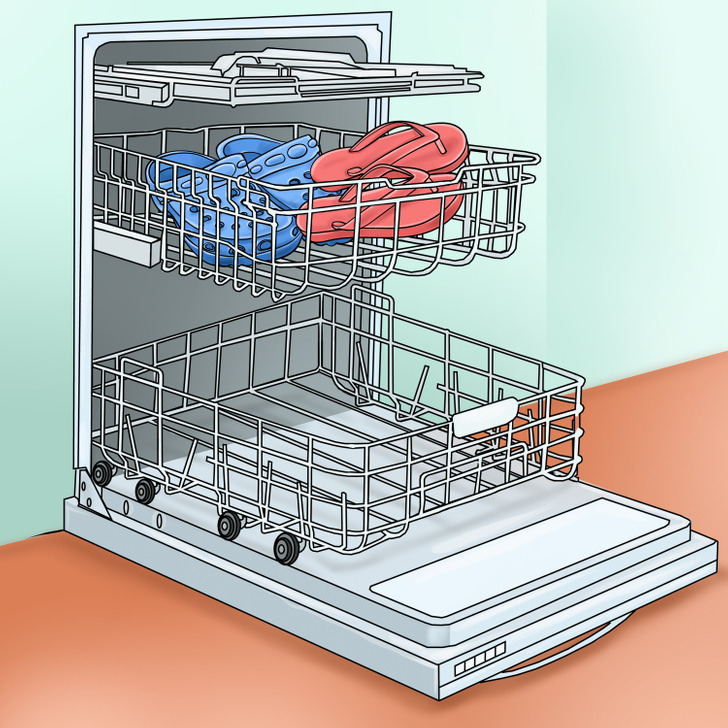 4. دمپایی های پلاستیکی مانند دمپایی حمام: این وسایل به خوبی در ماشین ظرف شویی شسته می شوند اما بهتر است آنها را جدا از دیگر ظروف بشویید.