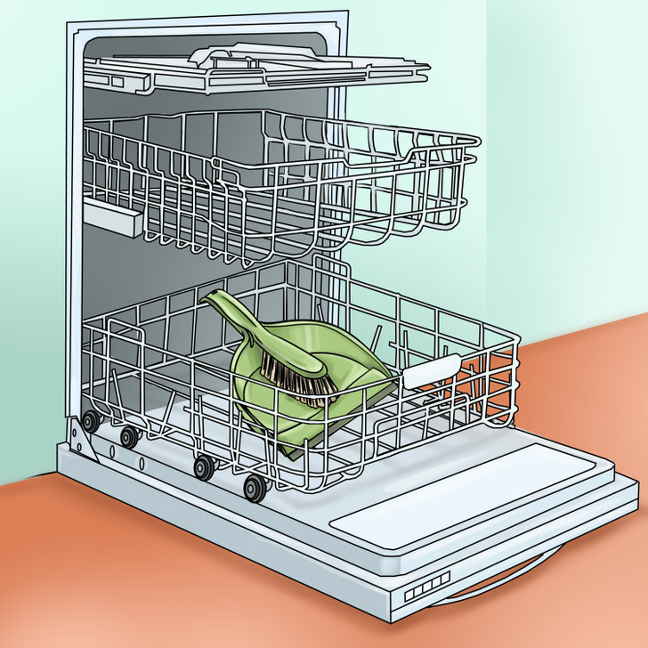 2. جارو، خاک انداز و دیگر برس های شستشوی پلاستیکی: ماشین ظرفشویی می تواند این وسایل را به خوبی بشوید. تنها توجه داشته باشید که سر آنها را به سمت پایین قرار داده تا آسیب نبینند.