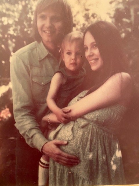 مارچلین برتراند به همراه همسرش جان وایت و پسرش جیمز در سال 1975 ، هنگامی که او دخترش آنجلینا جولی باردار بود.